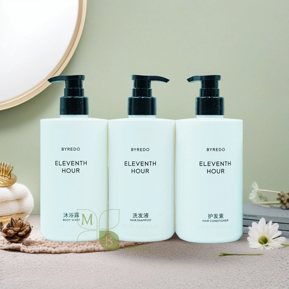 Indulge in the apocalyptic warmth of BYREDO Eleventh Hour. This prestigious set includes a revitalizing shampoo, conditioner, body wash, and lotion.
